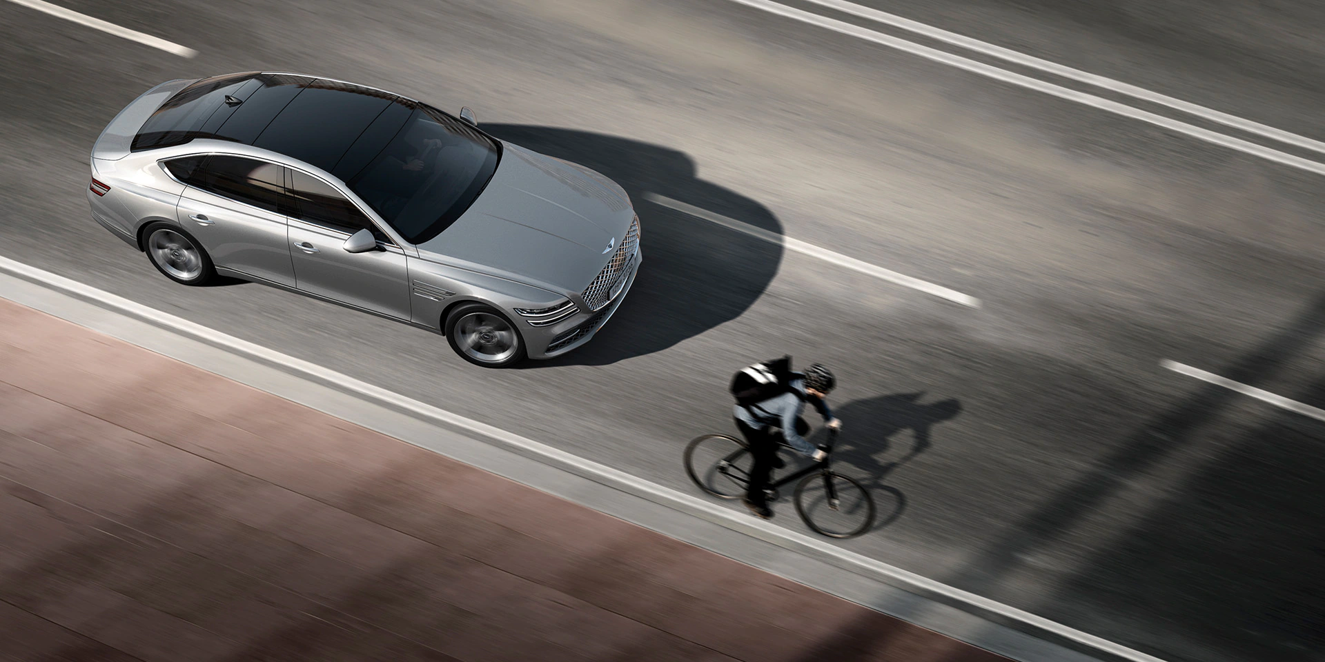 운전자가 앞을 보고 운전하고 있지만 주위를 살피지 못하고 사고가 나는 경우가 많습니다. 전방 충돌방지 보조는 크게 교차 차량 대응 / 측방 접근차 대응 나뉘는데요. 교차 차량 대응은 앞에 가는 차량이 갑자기 속도를 줄이거나 보행자나 자전거가 갑자기 지나가면서 충돌 위험이 있는 경우 경고하고 사고가 예상되면 자동으로 제동을 하여 인명 피해를 줄일 수 있는 기능입니다. 측방 접근차 대응은 주행 중 차로 변경을 하는 상황에서 맞은편 차량 및 옆 차로의 선행 차량과 충돌 위험이 높아지면 자동으로 회피 조향 보조를 하여 사고를 줄여주는 역할을 합니다.