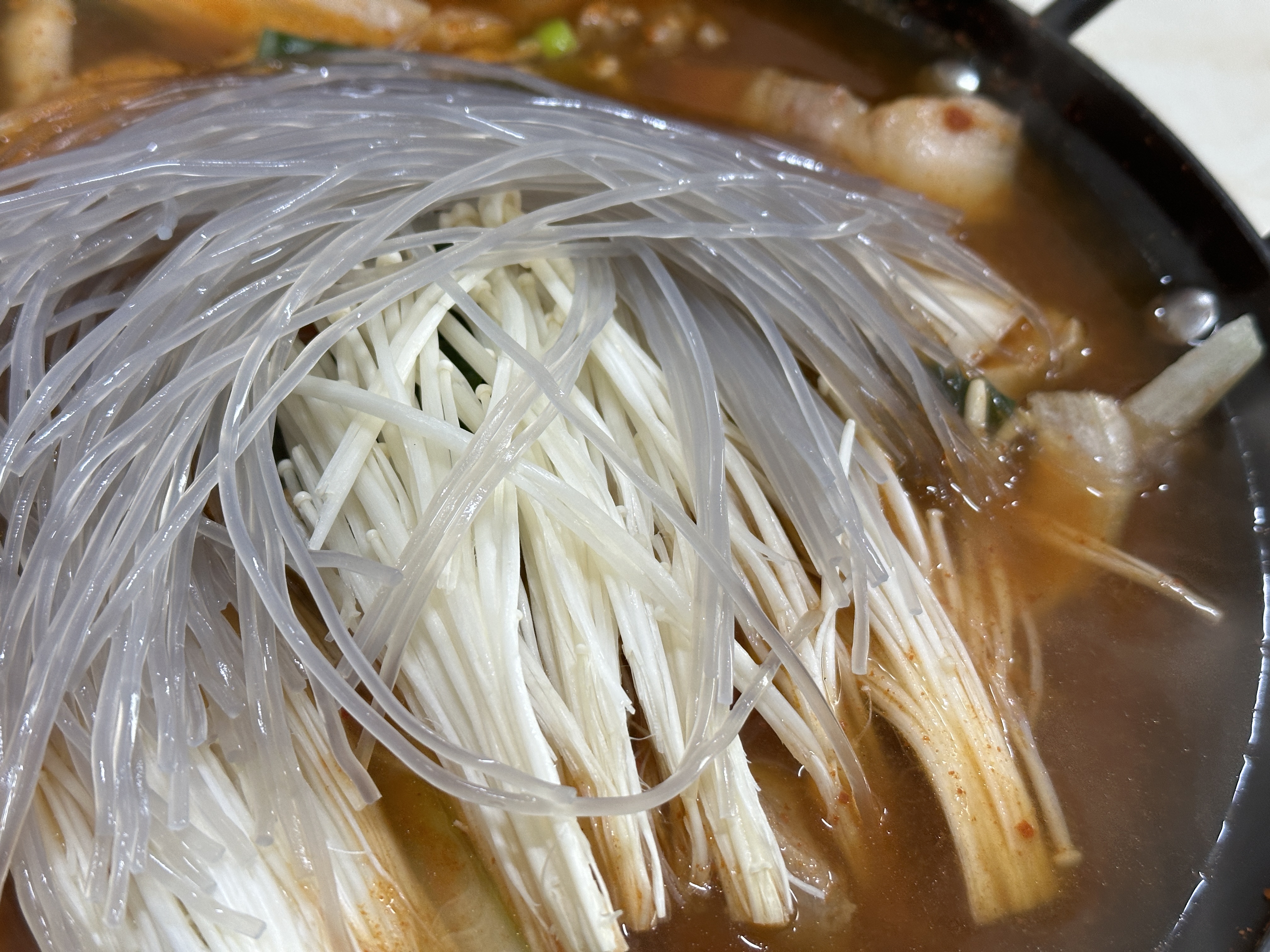 돼지고기 그리고 두부와 팽이버섯 그리고 당면과 호박 / 양파 / 파가 전부인 메뉴는 육수가 조금 특이한 것을 제외하고는 특별히 새로운 느낌은 없다. 끓는데 시간이 좀 걸리는 편이다.