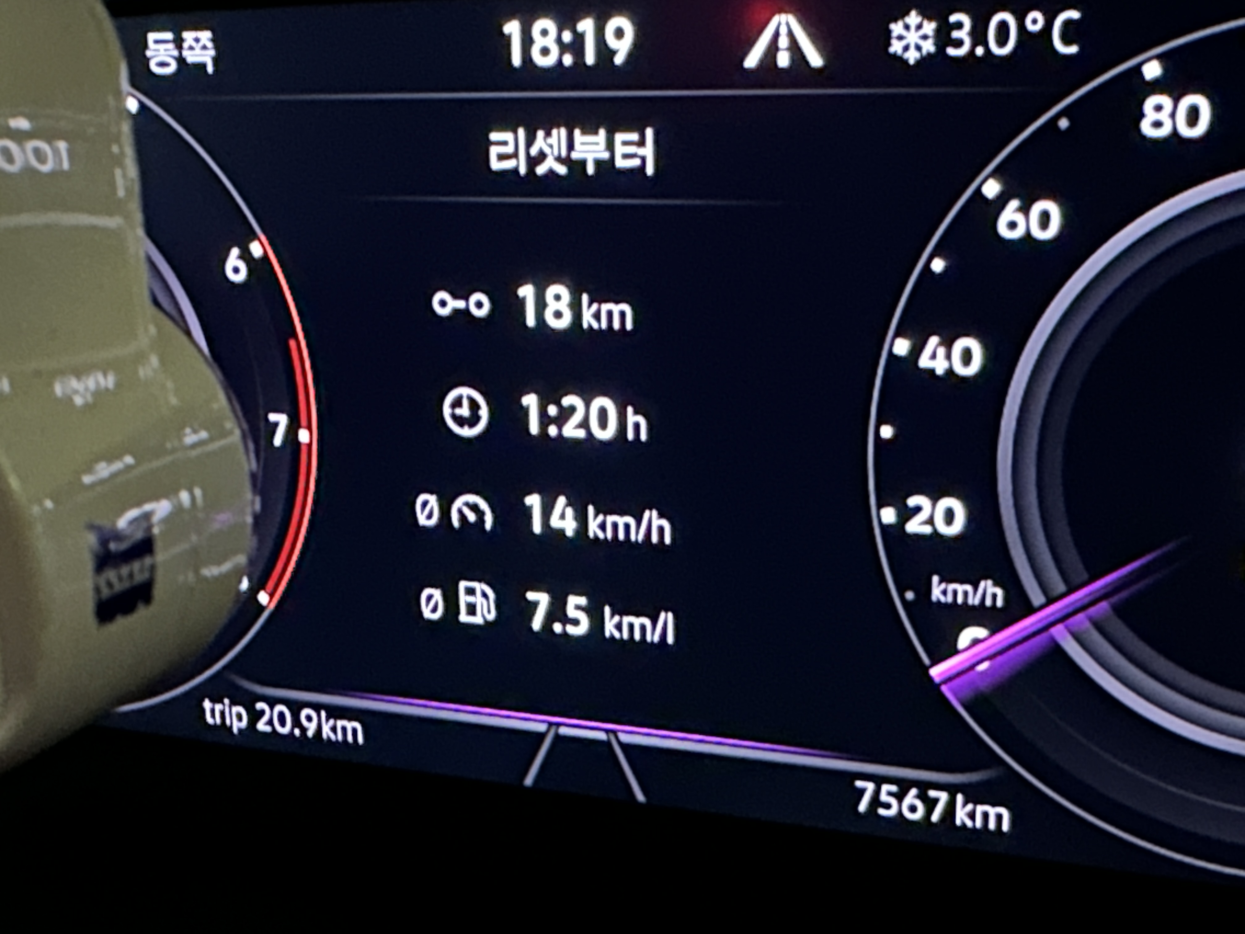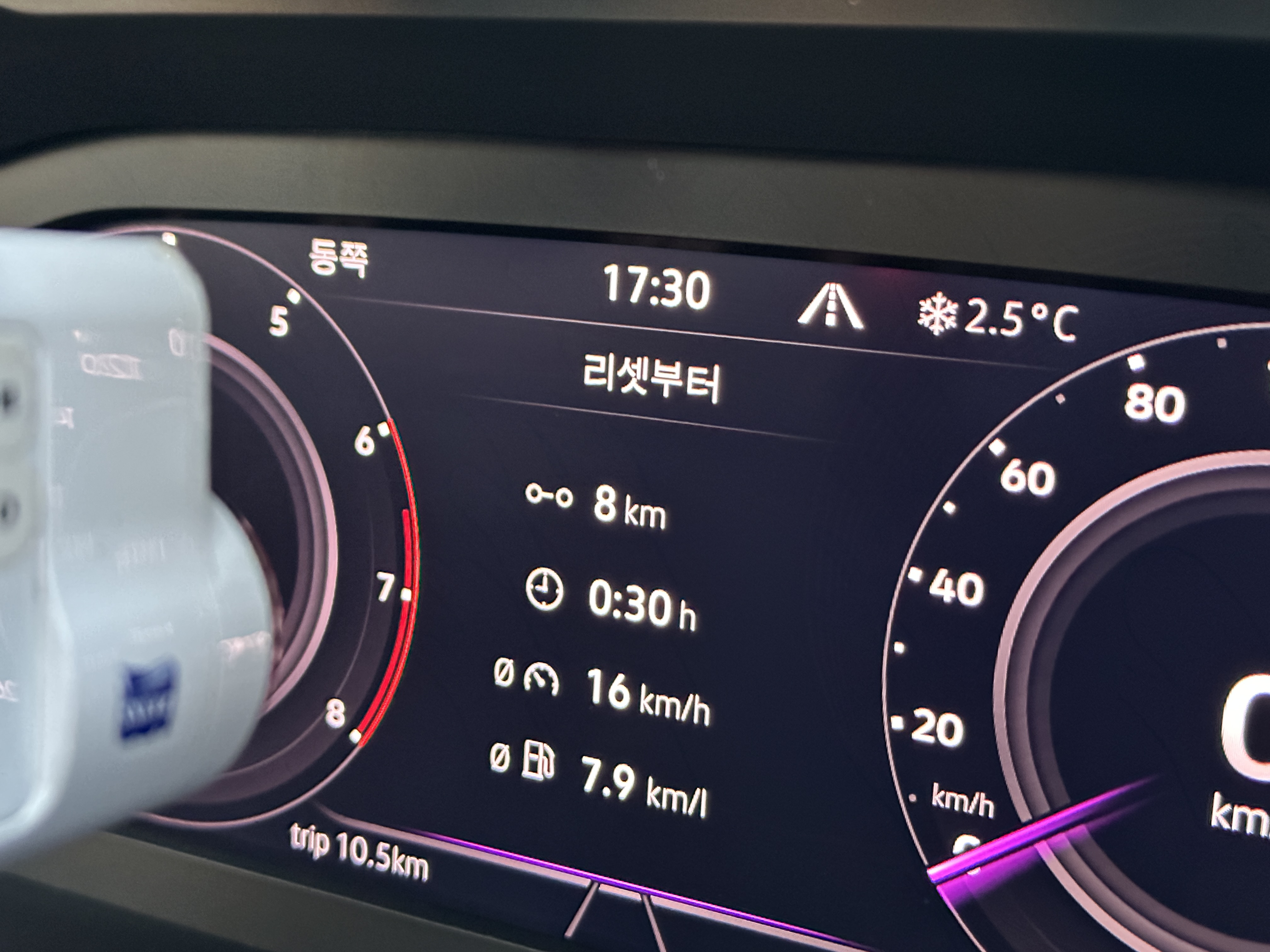 두 번째 체크 구간인 서울대입구역 8.0km까지 약 30분이 소요되었고 연비는 7.9km/L를 보여줬다.