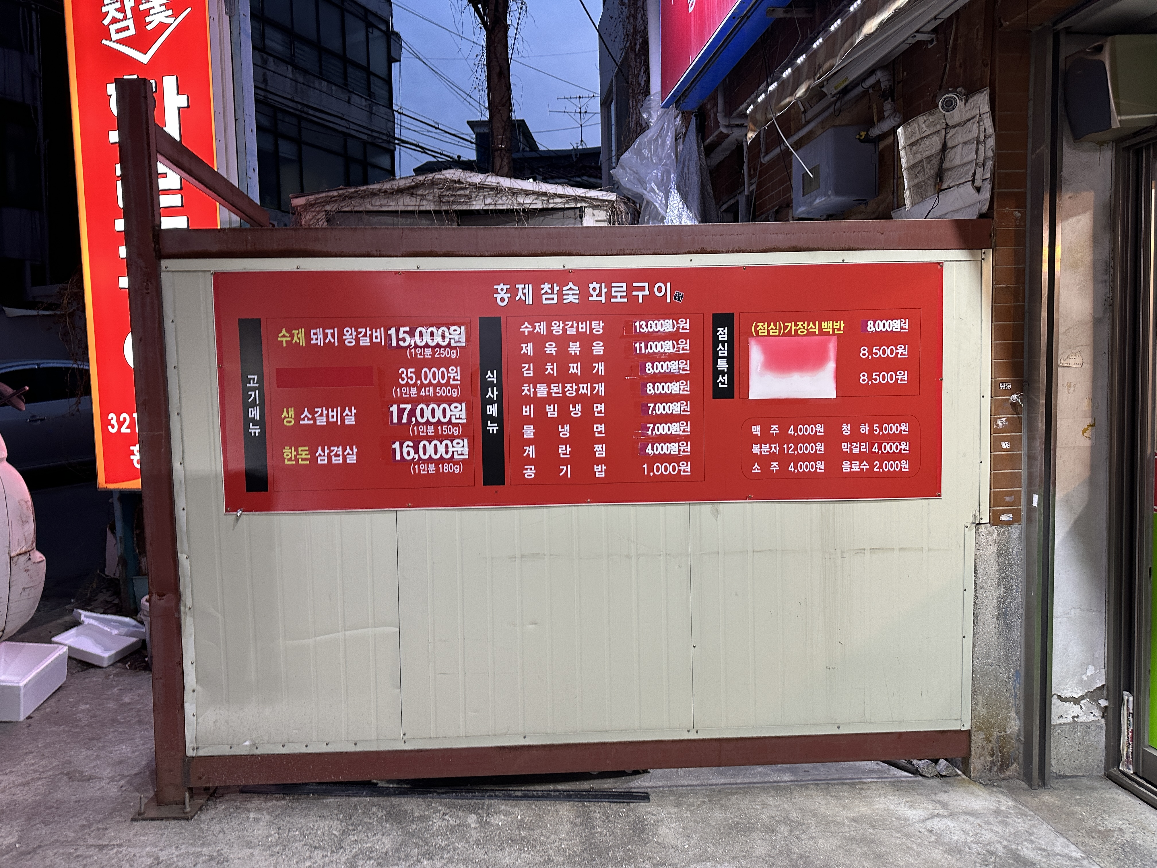 홍제 참숯 화로구이라는 이름을 가지고 있는 이 곳은 야자탄이 아닌 참숯을 사용하고있기에 추천하고 싶은 곳이다.