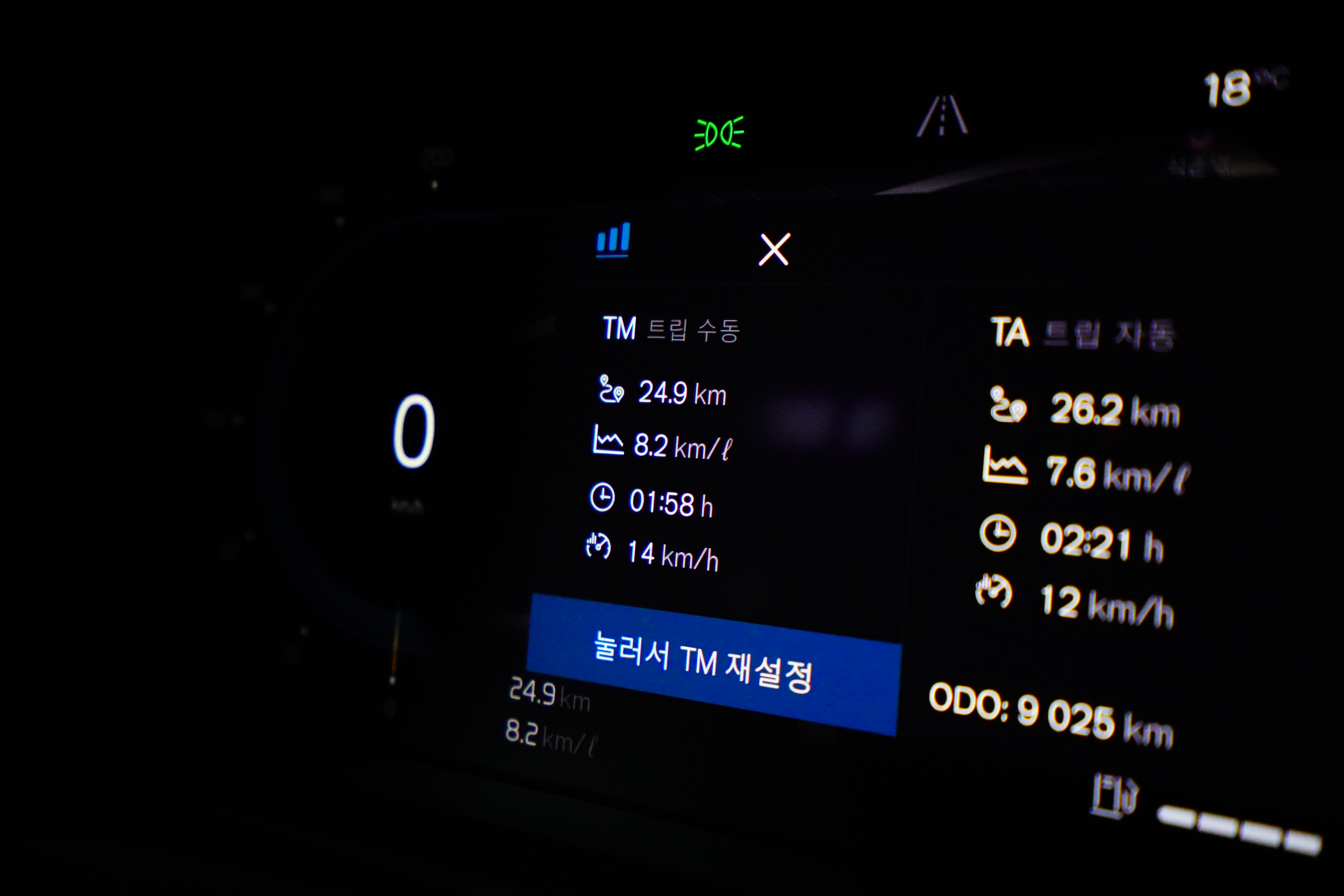 볼보 S60 2.0 마일드 하이브리드 : 8.2km/L (1시간 58분 소요)