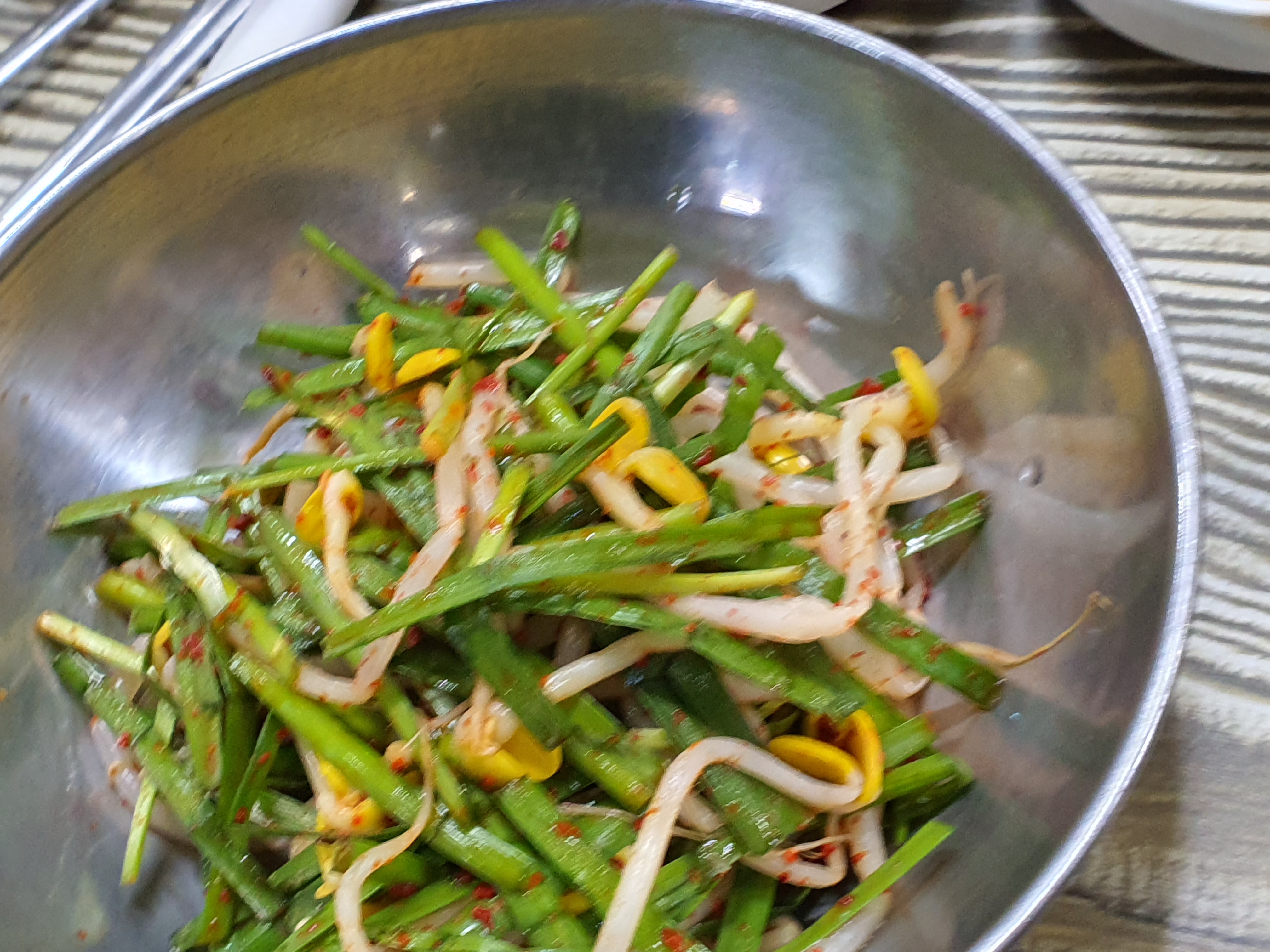 김치 생각보다 엄청 맛있는데 직접 담그시는 열무김치로 곱창집에서 사실 보기 힘든 메뉴이지만 느끼한 대창을 먹을때 깔끔한 열무김치가 궁합이 상당히 좋은 편이다. 여기에 콩나물과 부추의 조합도 생각보다 괜찮은 편이라 계속 들어가기도 한다.