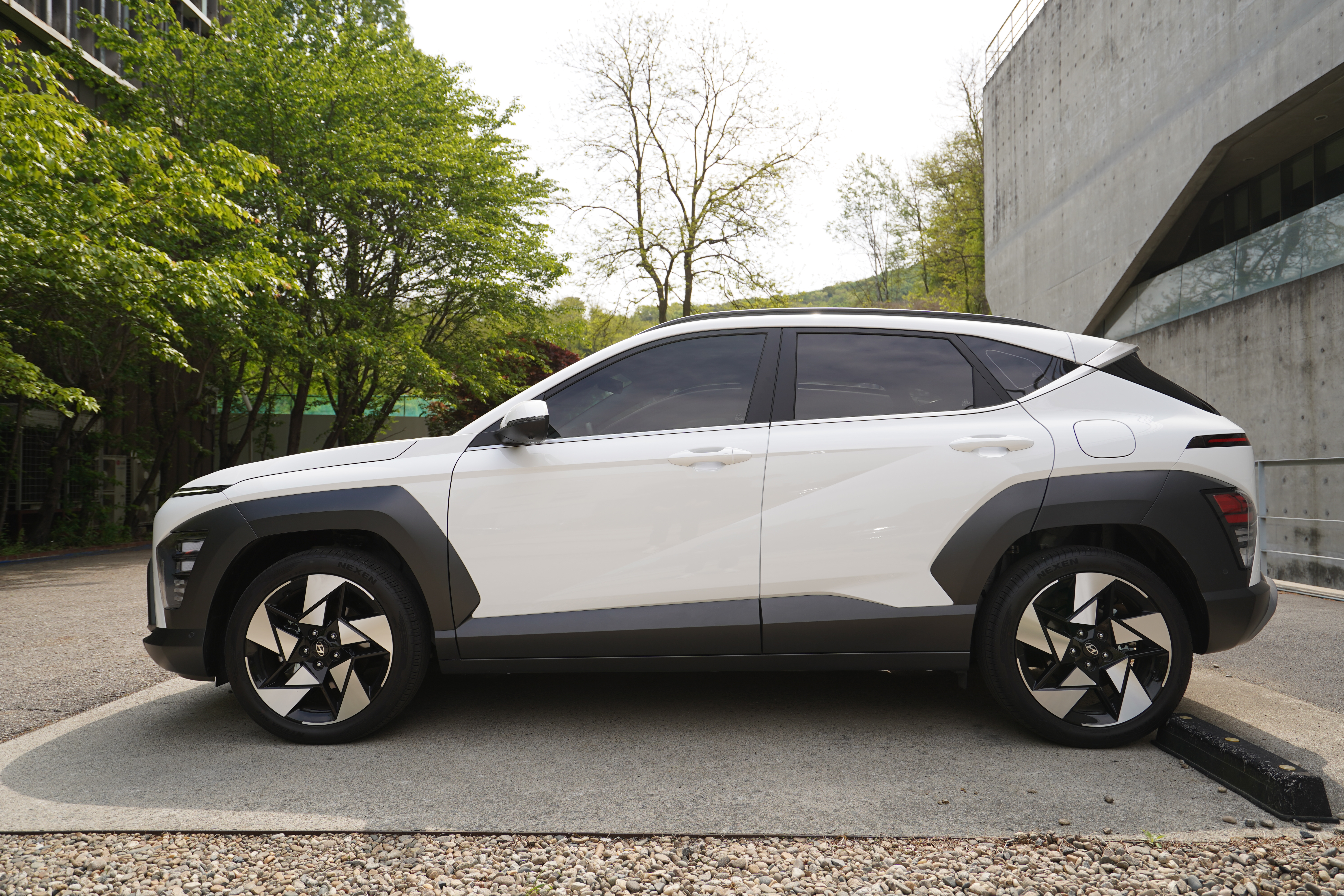 코나 일반 모델을 살펴보면 둥글 둥글한 느낌이 사실 디자인적으로 괜찮다는 느낌을 주고 있다. 하지만 코나 N-Line 전면 디자인과 비교하면 뭔가 허전하고 부족한 느낌이 강한데 그 만큼 코나 N-Line의 존재감은 꽤 좋은 편이다. 코나 N-Line 전용 프론트 범퍼를 적용하여 날렵한 느낌으로 고성능 SUV에 대한 느낌을 충분히 적용하고 있으며 기본형과 마찬가지로