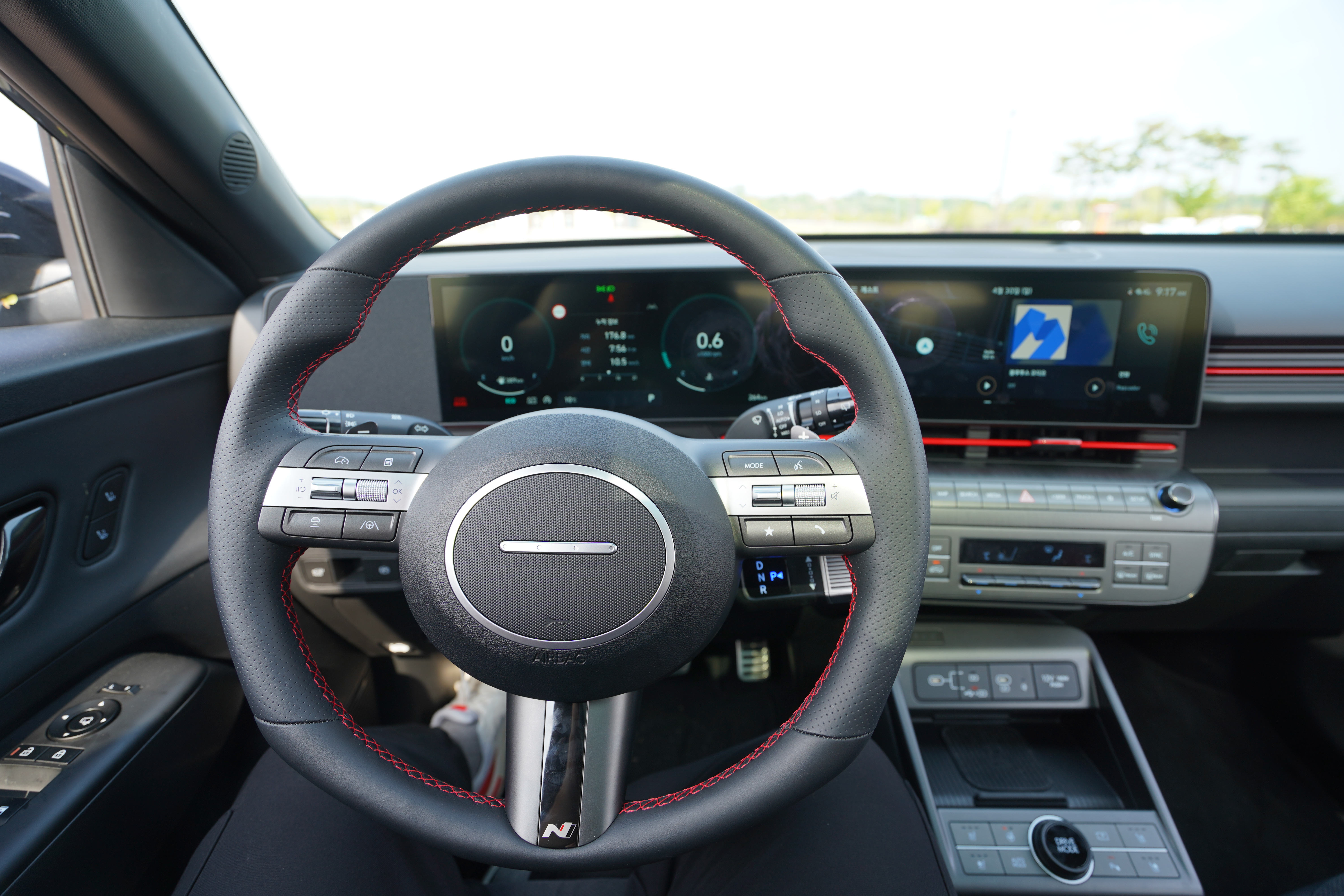 실내에서 가장 만족스러운 부분은 바로 시트이다. N-Line 전용 천연가죽 / 알칸타라 콤비 시트는 정말 만족감이 좋은데보통 알칸타라 재질을 사용하는 고성능 자동차 모델들은 통풍시트가 없지만 코나 N-Line에는 통풍시트까지 편의성이 돋보여지고 있다. 무엇보다 차량 실내에서 눈에 가장 많이 보이는 레드 라인이 참 인상적인데 물론 개인적인 생각이다.
