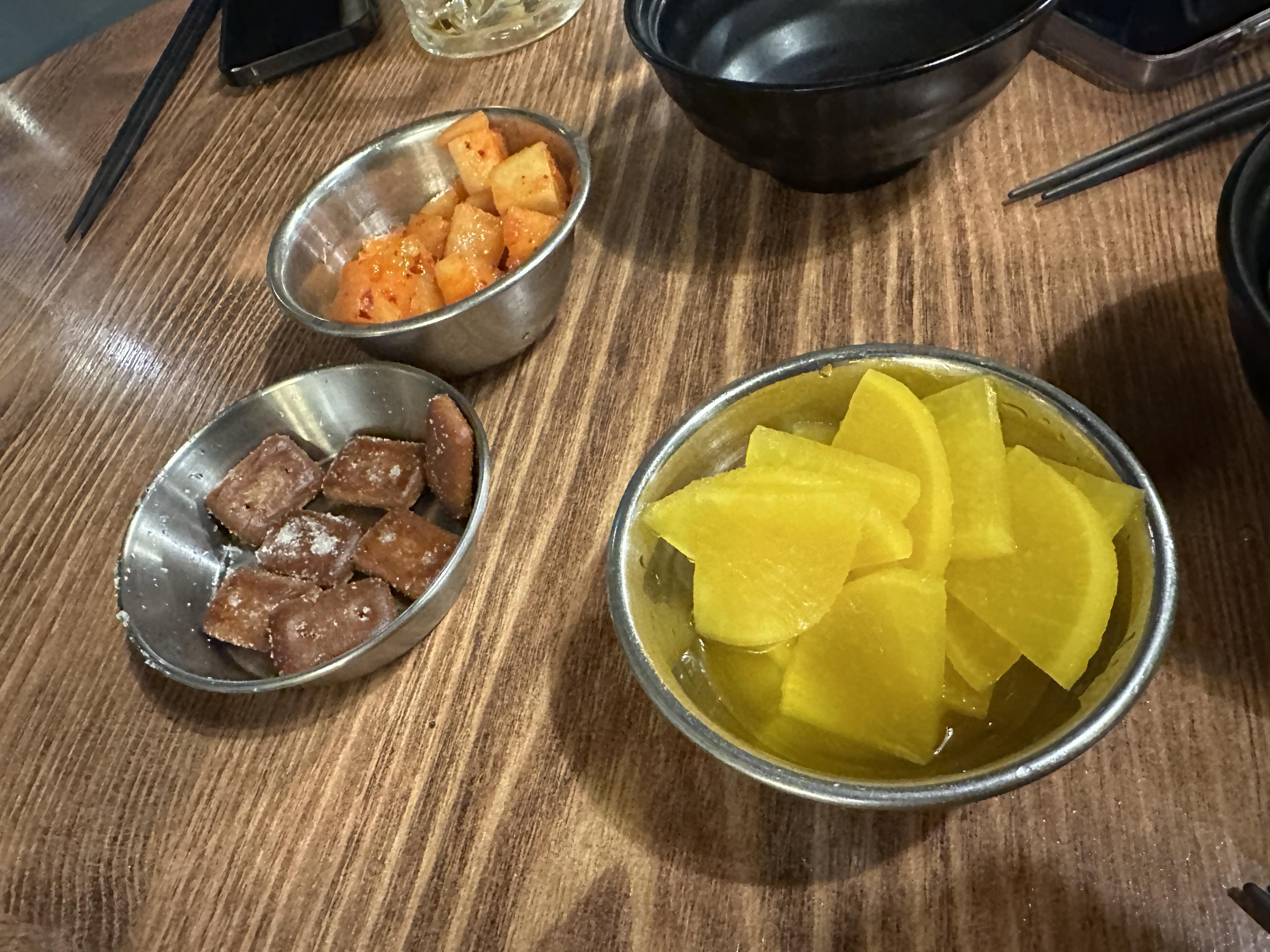 기본 안주로 군대에 추억의 안주인 건빵 튀김을 먹을 수가 있는데요. 여기에 돈까스의 영원한 친구인 단무지와 미니 깍두기를 만나볼 수 있습니다. 보통 이 곳을 2차로 많이 방문해서 그런지 이상하게 달달하게 땡기는데 건빵 튀김은 정말 최고의 안주라고 이야기할 수가 있습니다.