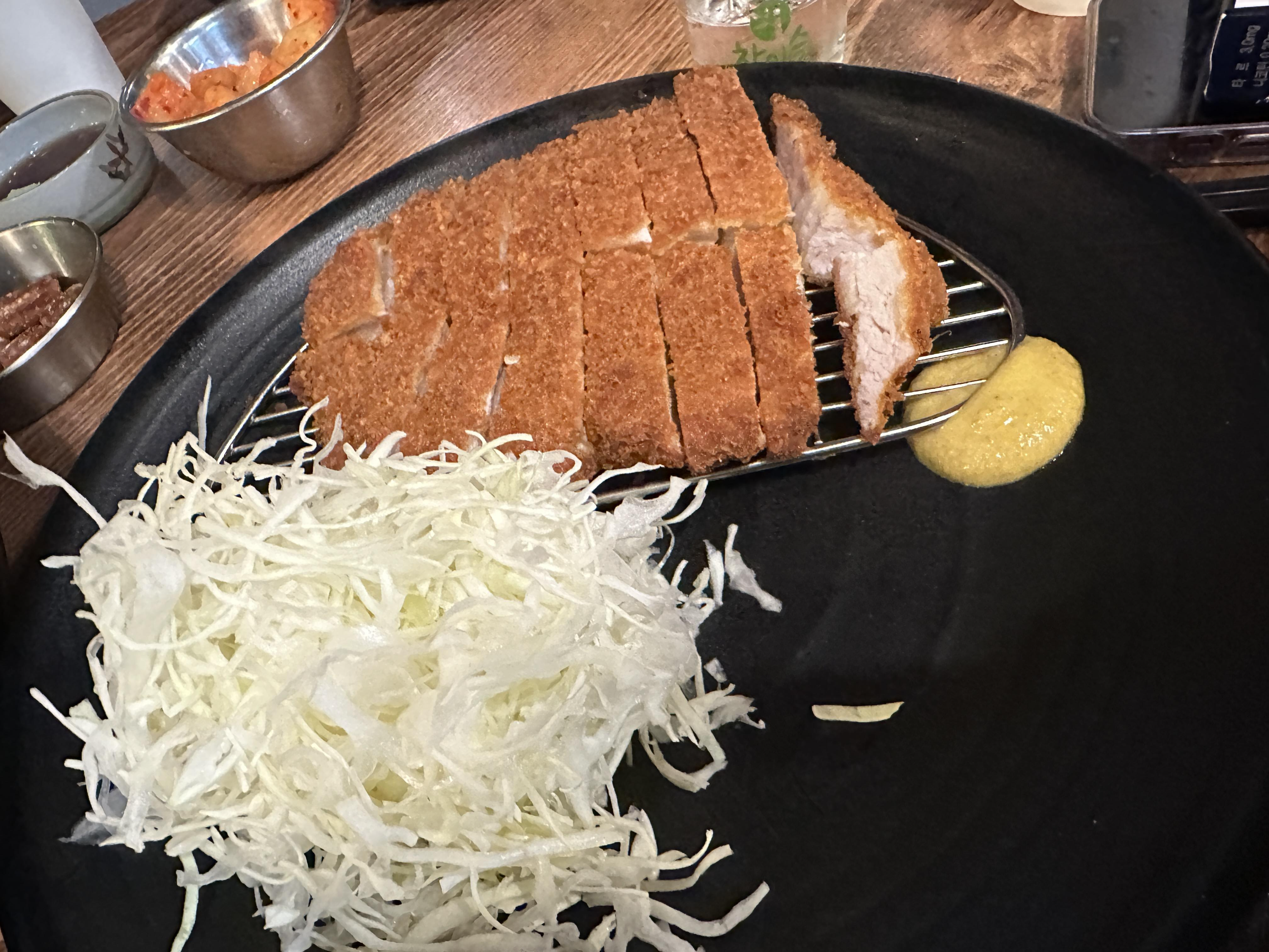 이름 자체가 한양 돈까스인만큼 돈까스 맛은 정말 좋습니다. 단순히 튀김 옷이 두꺼운 돈까스가 아닌 고기 맛으로 승부하는 곳인데요. 이자카야에서 이런 돈까스 안주가 나온다면 2만원이 훌쩍 넘는 금액이지만 식사류이기 때문에 1만원이면 먹을 수 있어서 정말 좋은 안주가 아닌가 싶습니다. 여기에 다양한 메뉴를 추가로 먹을 수 있어서 더욱 좋습니다.