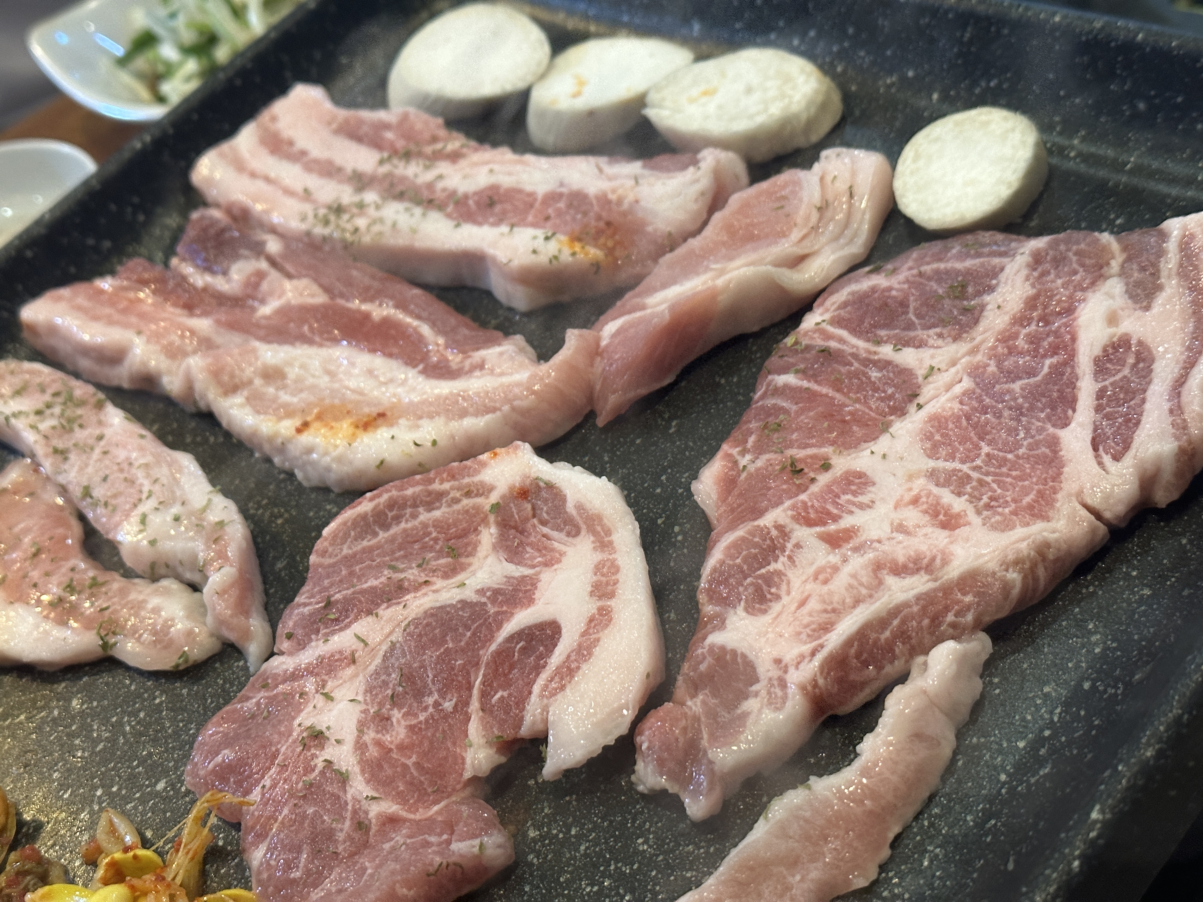 일단 뚝섬역 맛집 손박사 삼겹살 & 갈비에 가장 큰 장점은 고기 질이 정말 좋다는 점입니다. 전체적으로 맛이 꽤나 좋은 편이라서 한 번 먹어보면 또 오고 싶어지는 그런 마성의 매력을 가지고 있는 곳인데요. 고기가 정말 맛이 좋아서 추천하고 싶은 곳 중 하나입니다.