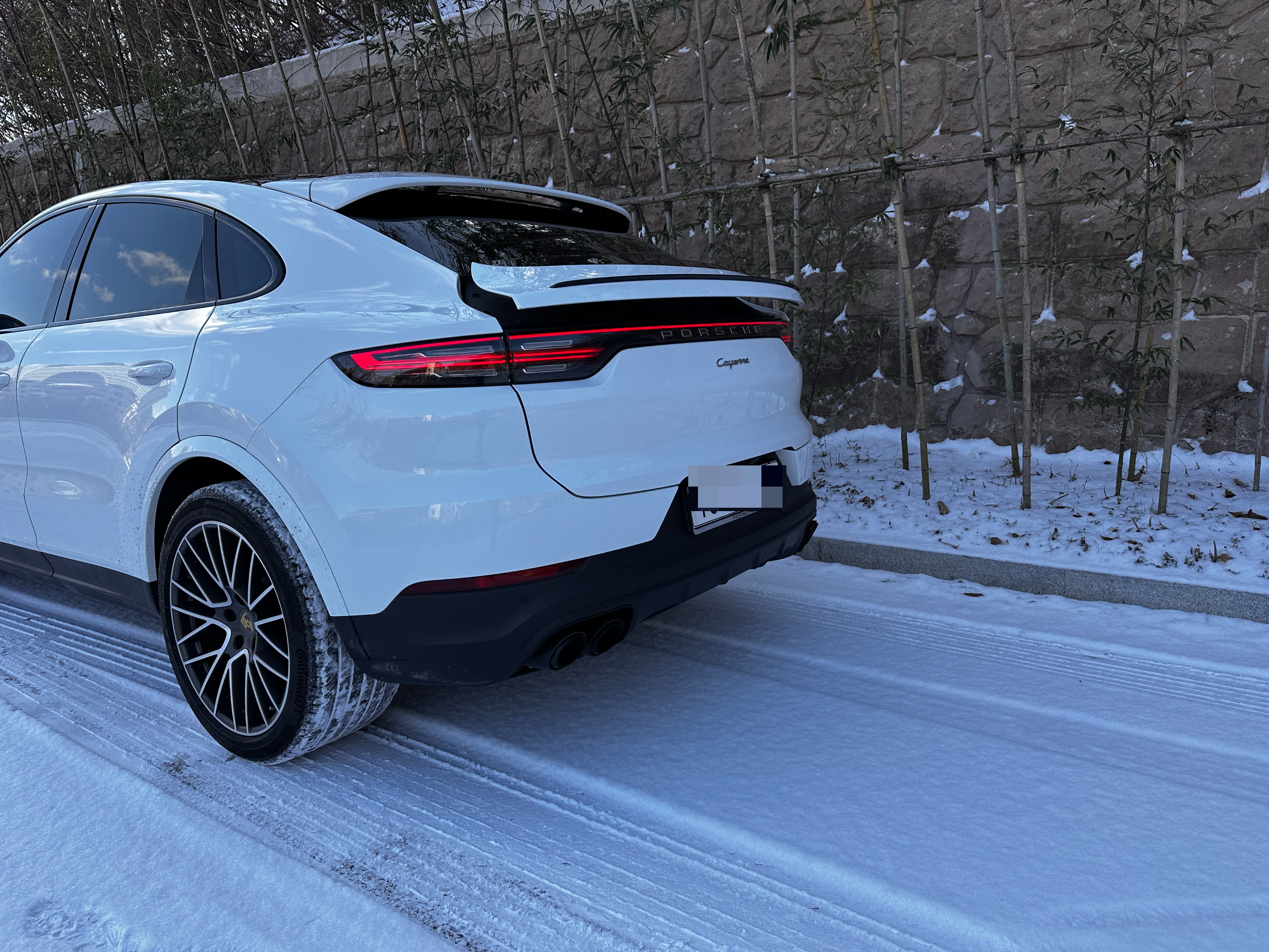 2022 포르쉐 카이엔 쿠페는 스포티한 실루엣과 역동적인 라인을 통해 포르쉐 특유의 우아함과 강력함을 동시에 표현한다. 전면부는 포르쉐의 아이코닉한 LED 헤드라이트와 함께 넓고 낮은 에어 인테이크로 공격적인 인상을 준다. 후면부는 슬림한 LED 스트립과 함께 통합된 리어 스포일러가 특징이며, 이는 공기역학적 효율성과 시각적 매력을 동시에 강조한다.