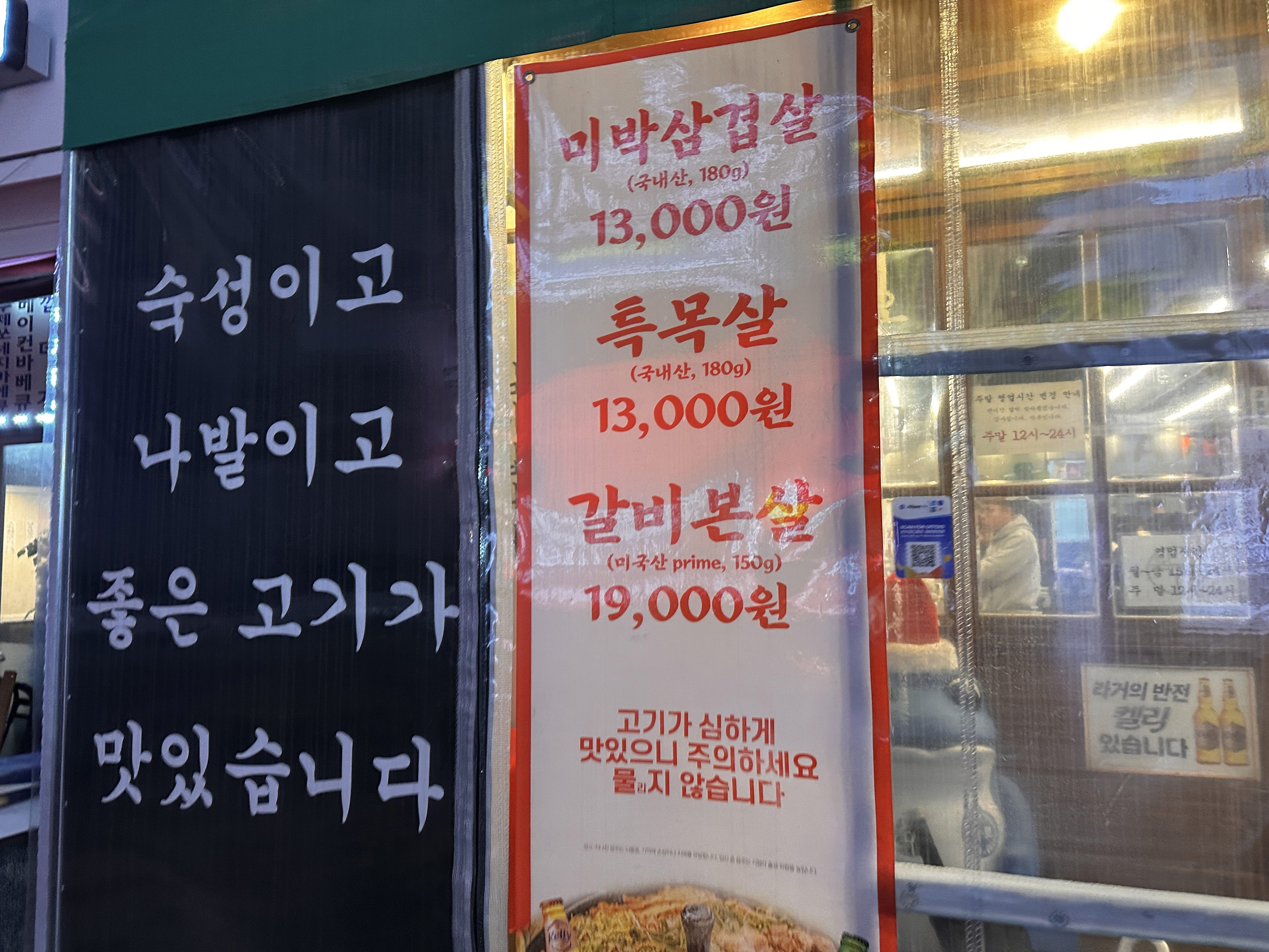 #목구멍의 메뉴판은 다양하고 푸짐하게 준비되어 있습니다. 삼겹살, 갈비살, 목살 등 다양한 부위를 즐길 수 있는데, 가격대는 상당히 합리적입니다. 특목살, 국내산 삼겹살과 같은 프리미엄 메뉴들이 고객의 입맛을 사로잡습니다.