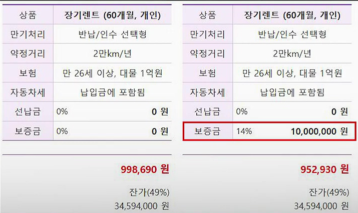 자동차 장기렌트 보증금 선수금에 차이는 알았는데 어떤 상황에서 선수금을 더 많이 넣는 것이 유리할까?