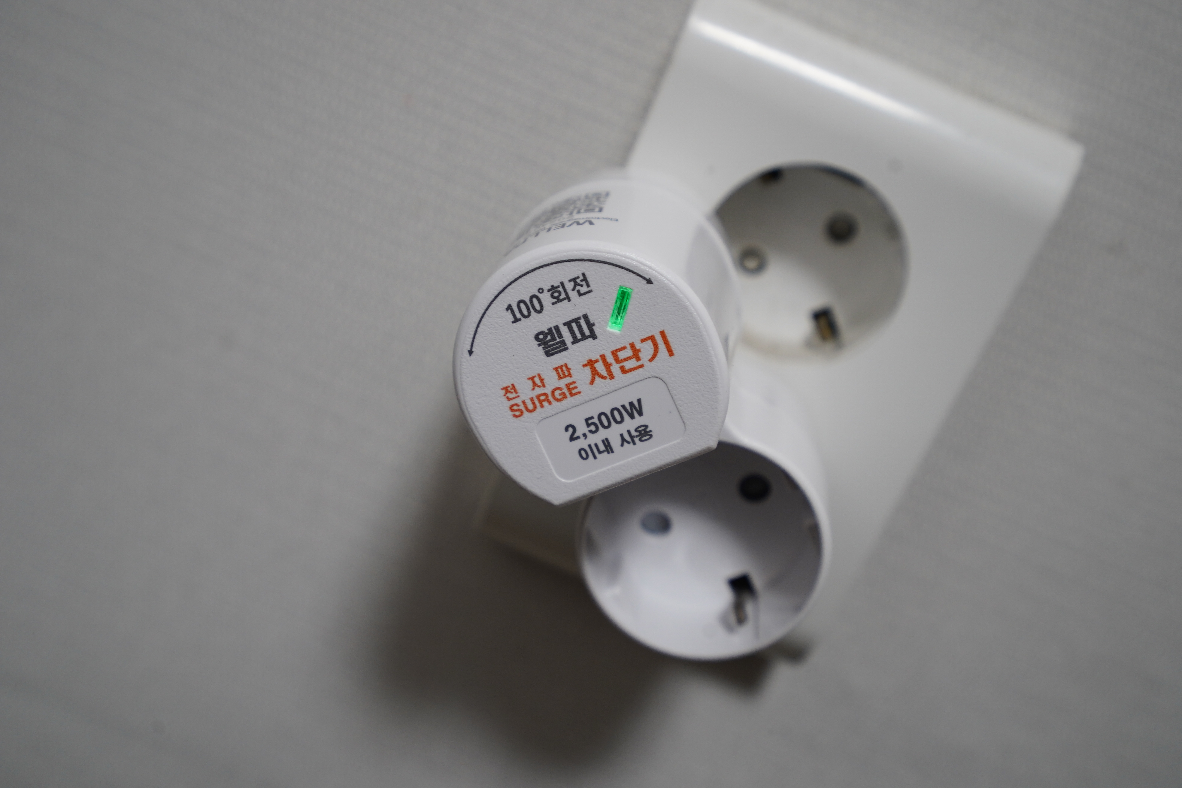 기존에 사용하는 콘센트에 사용하면 되고 멀티탭에도 연결해서 사용할 수 있다. 단 2,500W이내로 사용해야하기에 전열기구같은 고온을 발생시키는 제품에는 사용하지 않은 것이 좋다.