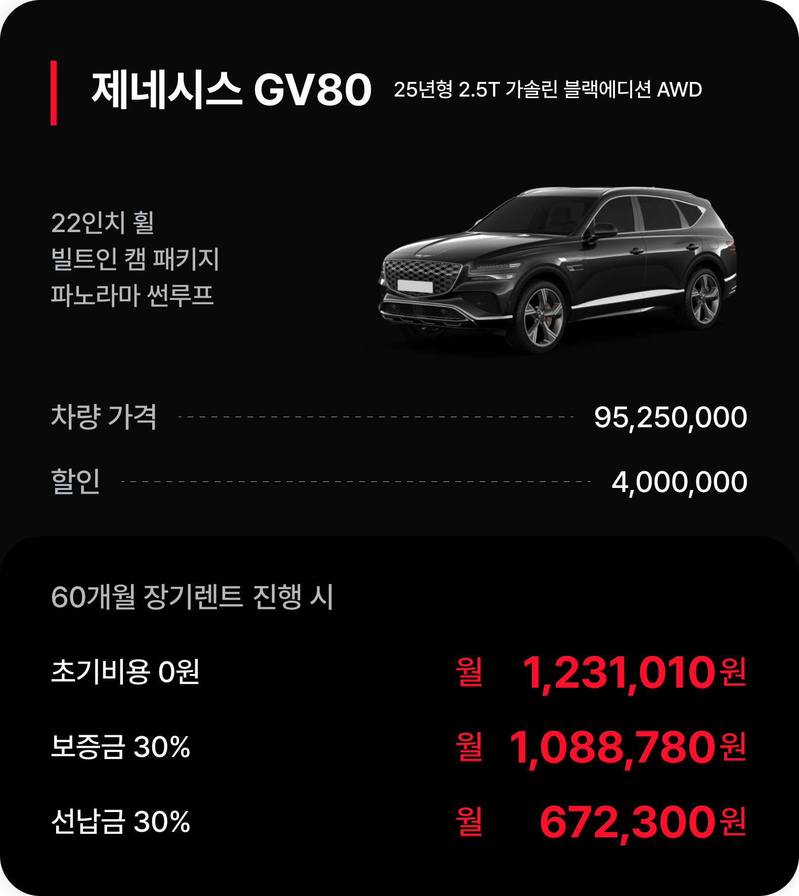 2025년 판매량 3위 제네시스 GV80 장기렌트 가격 분석과 블랙에디션 실견적