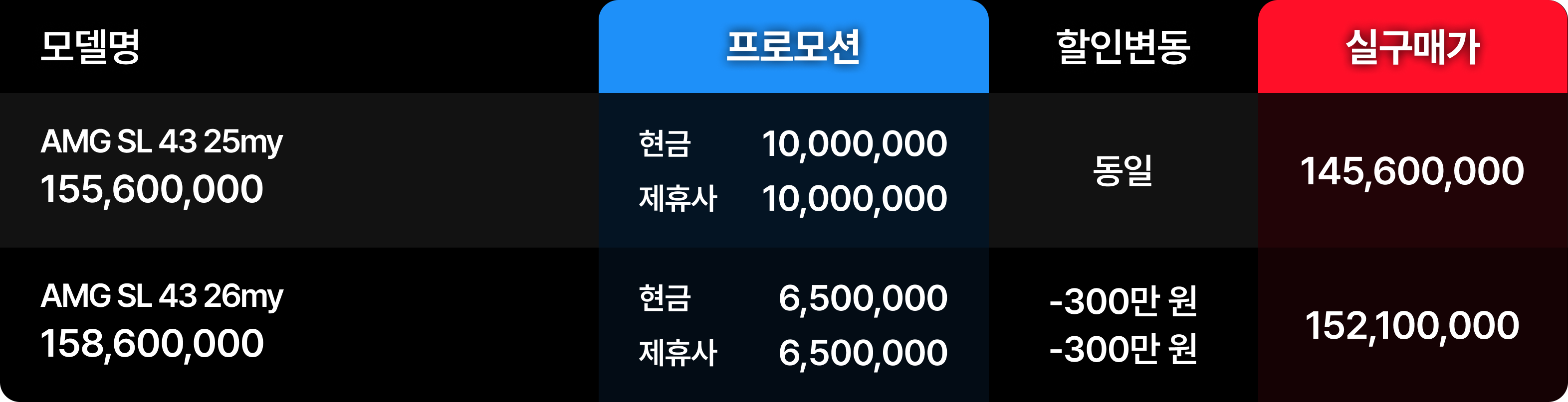 2026년 1월 메르세데스 벤츠 AMG 프로모션 분석 : AMG GT 63 S E 퍼포먼스 출시와 SL 43 할인 변동성