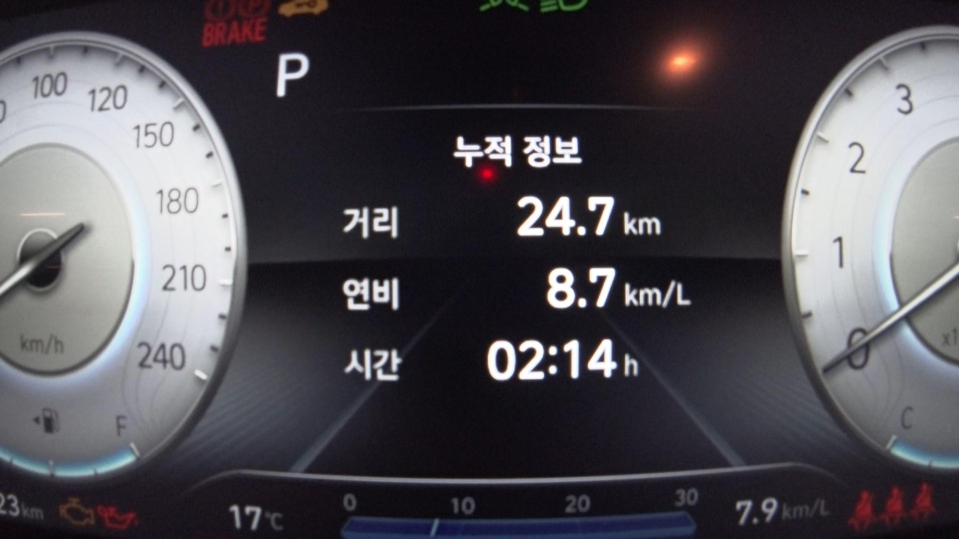 경기 광명에서 가산디지털단지를 지나 구로디지털단지역까지 약 2.9km를 주행하면서 걸린 시간은 약 17분이였다. 연비는 8.3km/L로 아반떼 공인 시내 연비의 13.1km/L 보다 낮은 수치이지만 본격적인 출발로 아주 나쁜 느낌은 아니였다. 동일한 구간에서 비슷한 시간으로 기아 K5 1.6 가솔린 터보 모델이 동일 구간 18분이 걸려 6.5km/L라는 연비를 보여준것을 보면 나름 효율은 괜찮은 느낌이다.
