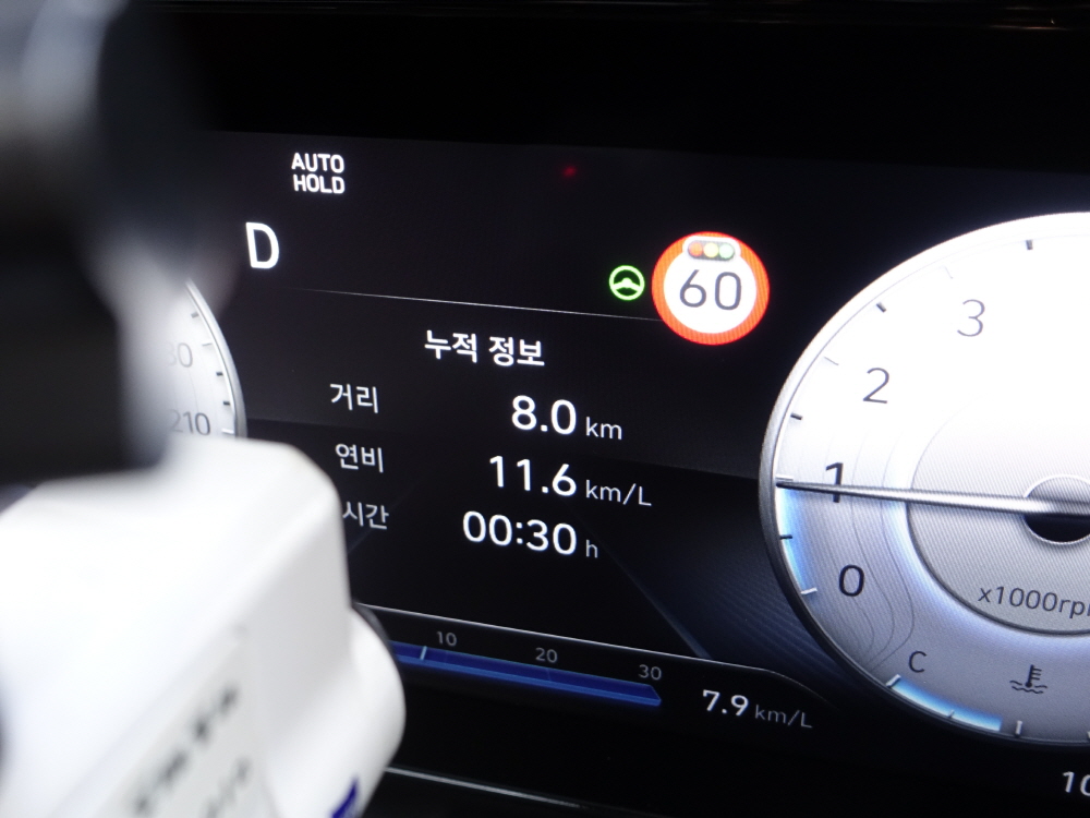 서울대입구역까지 출발부터 약 8km 주행을 했으며 시간은 30분이 소요되었다. 연비는 11.6km/L를 보여주고 있는데 동일한 구간에서 K5 1.6 가솔린 터보 모델이 41분 소요되어 8.0km/L라는 연비를 보여줬기에 스마트스트림 G1.6 엔진에 연비는 어느정도 만족스러운 수준이였다.