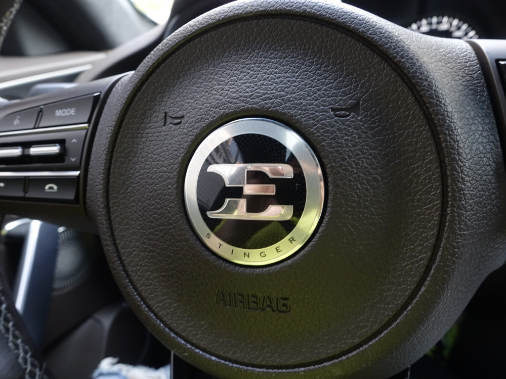스팅어는 기아자동차 최초로 에센시아 엠블럼을 장착을 했다. 물론 수출형 스팅어는 차별을 하는 것인지 기아 엠블럼을 넣어주는데 오히려 내수에 이렇게 기아 엠블럼이 아닌 에센시아 스팅어 엠블럼이 적용되어 있어 소유주의 만족감은 훨씬 높은 편이다. 여기에 렉시콘 스피커는 기아 플래그쉽 K9 바로 아랫 등급으로 기아 모하비와 동일한 스피커 갯수가 적용되어 있어 실내 만족감은 굉장히 크다.