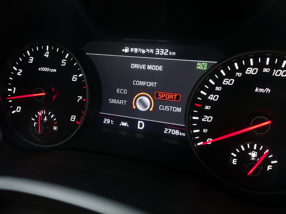 스팅어는 총 5가지 드라이브 모드가 있다. 물론 기아 자동차 대부분 차량이 이와 같은 드라이브 모드를 가지고 있는데 굳이 이렇게 많은 드라이브 모드가 필요할까? 라는 생각이 들었다. 하지만 스팅어의 드라이브 모드는 다른 기아자동차보다 좀 더 신경 쓴 느낌이고 특히나 스포츠 모드는 꽤 인상적이였다. 다만 차량 성격에 맞춰 스포츠 이상의 벨로스터N 모델의 N 모드 혹은 북미 시장에 한정판으로 내놓은 스팅어 GTS에 적용된 드리프트 모드를 추가했으면 어땠을까?