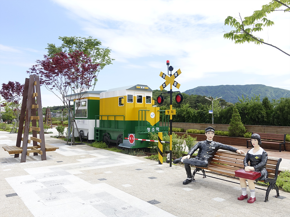 요즘 아이들에게는 KTX같은 고속철도 신기하지만 장항선 같은 기차는 교과서에서나 볼 수 있는 하나에 역사와 같은 존재가 되었다. 더군더나 이렇게 기차역도 신기하지만 간이역과 같은 존재는 아이들에게는 교과서가 아닌 실제로 만나볼 수 있는 존재가 되었다. #청소역 은 이렇게 실제로 간이역을 만나볼 수 있고 사진 촬영할 수 있는 공간도 마련되어 있다.