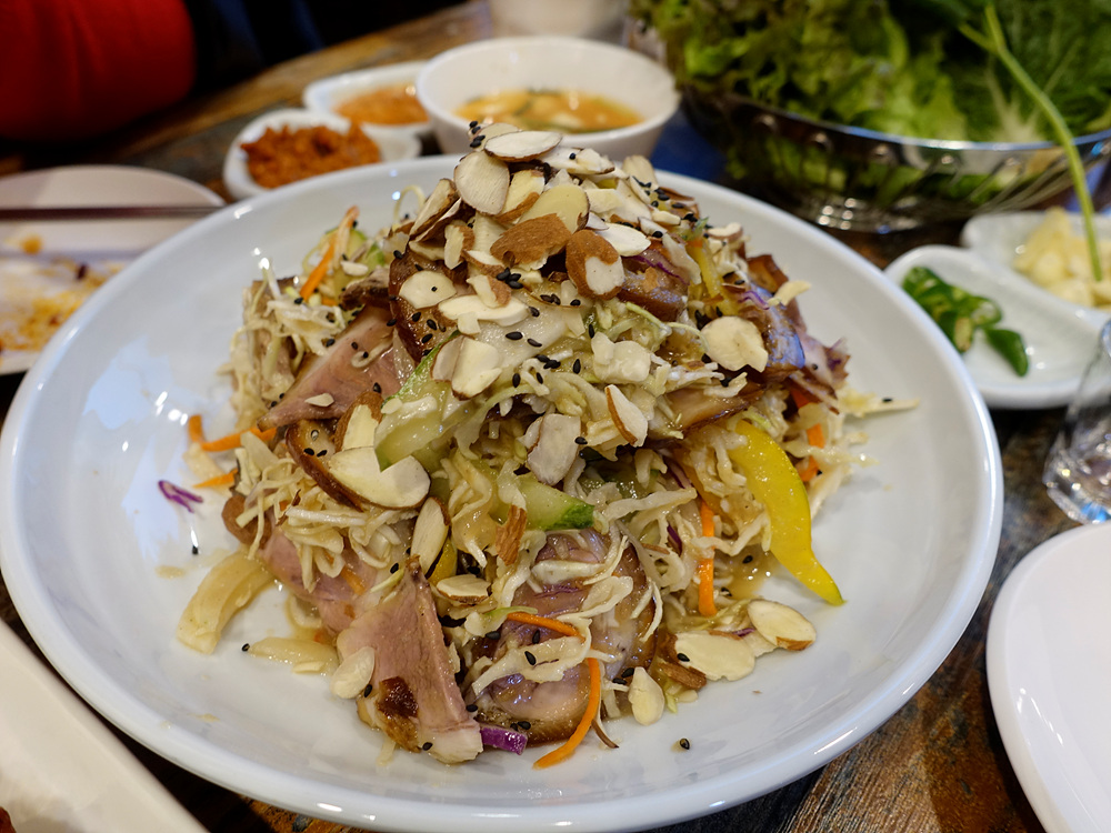 다원족발의 기본 밑반찬은 굉장히 신선한 채소로 시작한다. 족발을 많이 먹으면 다소 느끼해질 수 있는 부분을 신선하고 상큼한 채소로 입맛을 돋궈주기 때문에 상당히 괜찮은 조합이 아닌가 생각된다.