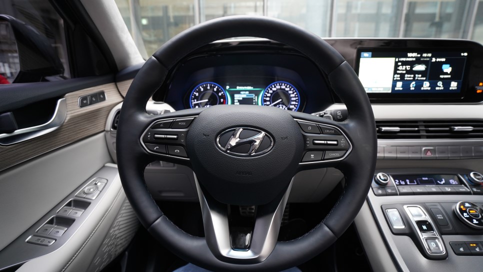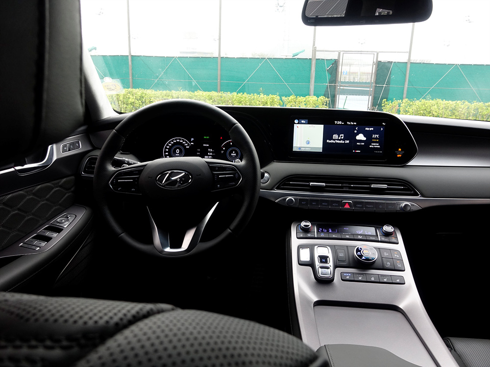 사실 오랜만에 팰리세이드를 시승하면서 스티어링 휠이 바뀌었다는 생각을 하지 못했다. 그 만큼 굉장히 미미한 부분이지만 운전자 피부와 가장 오랫동안 닿고 있는 스티어링 휠은 반 펑칭 가죽 스타일로 좀 더 스포티한 매력을 보여주고있다. 다만 너무 티가 나지 않는 다는 점이 살짝 아쉬운데 스티어링 하단에 Caligraphy라는 문구라도 넣어줬으면 어땠을까?