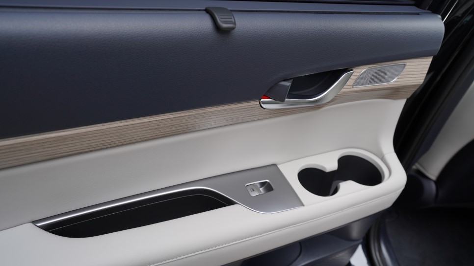 팰리세이드가 예전에 진작 적용했으면 하는 아쉬움이 바로 스피커 그릴이였다. 최근에 출시되는 현대자동차 모델에서는 상위 옵션 모델에는 도어 스피커 그릴이 적용되어 있는데 이번 캘리그라피에는 1열 도어 스피커 그릴이 추가 되어 있다. 다만 아쉬운 부분은 상위 트림이라고 하지만 기존 KRELL 스피커가 그대로 적용되어 있어 프리미엄 사운드 시스템이 추가로 들어가도 좋을 듯 하다.