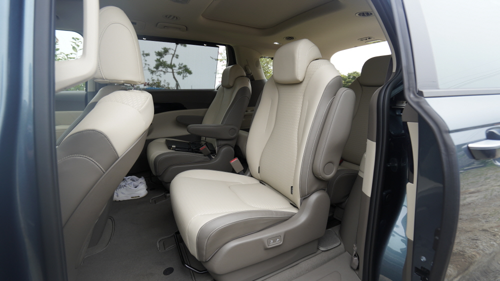 7인승 모델을 구입해야하는 이유는 바로 2열 프리미엄 릴렉션 시트 때문이다. 이 시트는 원터치 릴렉션 시트로 탑승자가 가장 편안한 자세로 승차가 가능하게 되며 파워 리클라이닝과 파워 레그 서포트 그리고 윙 아웃 헤드레스트로 주행 중에도 누워서 잠을 자면서 갈 수 있을 정도로 뛰어나다. 또한 2열 시트에 통풍 시트까지 더하여 7인승 모델은 평균 4인 최대 6명까지는 편안하게 주행이 가능하다.