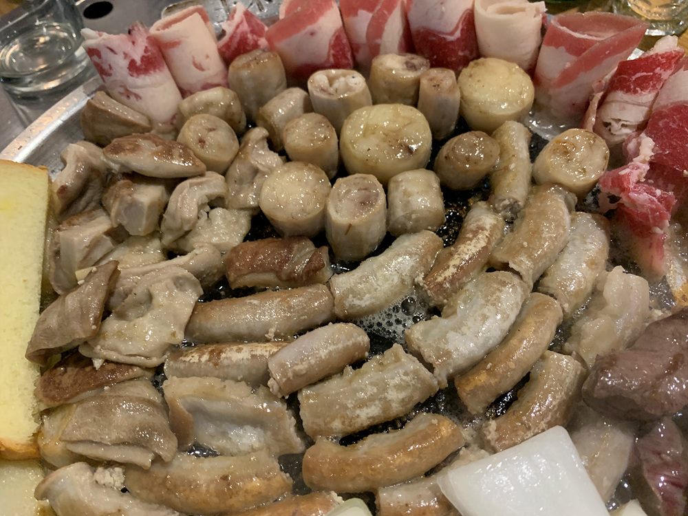 하안돌곱창의 매력은 아마도 옆에 나오는 우삼겹 그리고 곱창 / 막창 / 염통에 조화가 아닌가 싶다. 그 끝으로 기름기를 빨아드리는 식빵은 먹어도 되지만 건강을 위해서 기름만 빨아드리는 용으로 사용하는 것이 좋고 어느정도 곱창을 먹으면 느끼해지는데 빈 공간을 다시 곱창을 넣어서 살짝 익혀서 먹으면 정말 맛좋은 구성으로 맛볼 수가 있다.