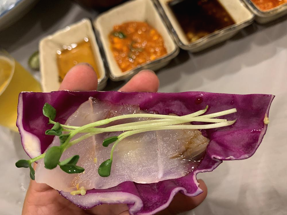 9월은 민어철이라 그런지 오마카세 횟집에서는 민어를 꽤 많이 잡는다. 강남 프라이빗 식당 몇 군데를 전화해봤지만 민어철이라고 해서 특별히 민어 회를 맛보기 힘들었지만 이 곳에서는 민어 뿐만 아니라 다양한 횟감을 맛볼 수가 있다. 민어는 철이 아니면 맛보기 힘든 생선으로 참치 다음으로 비싼 횟감으로 알려져 있어 접대하기 좋은 식당답게 쉽게 맛보기 힘든 요리를 선보인다.