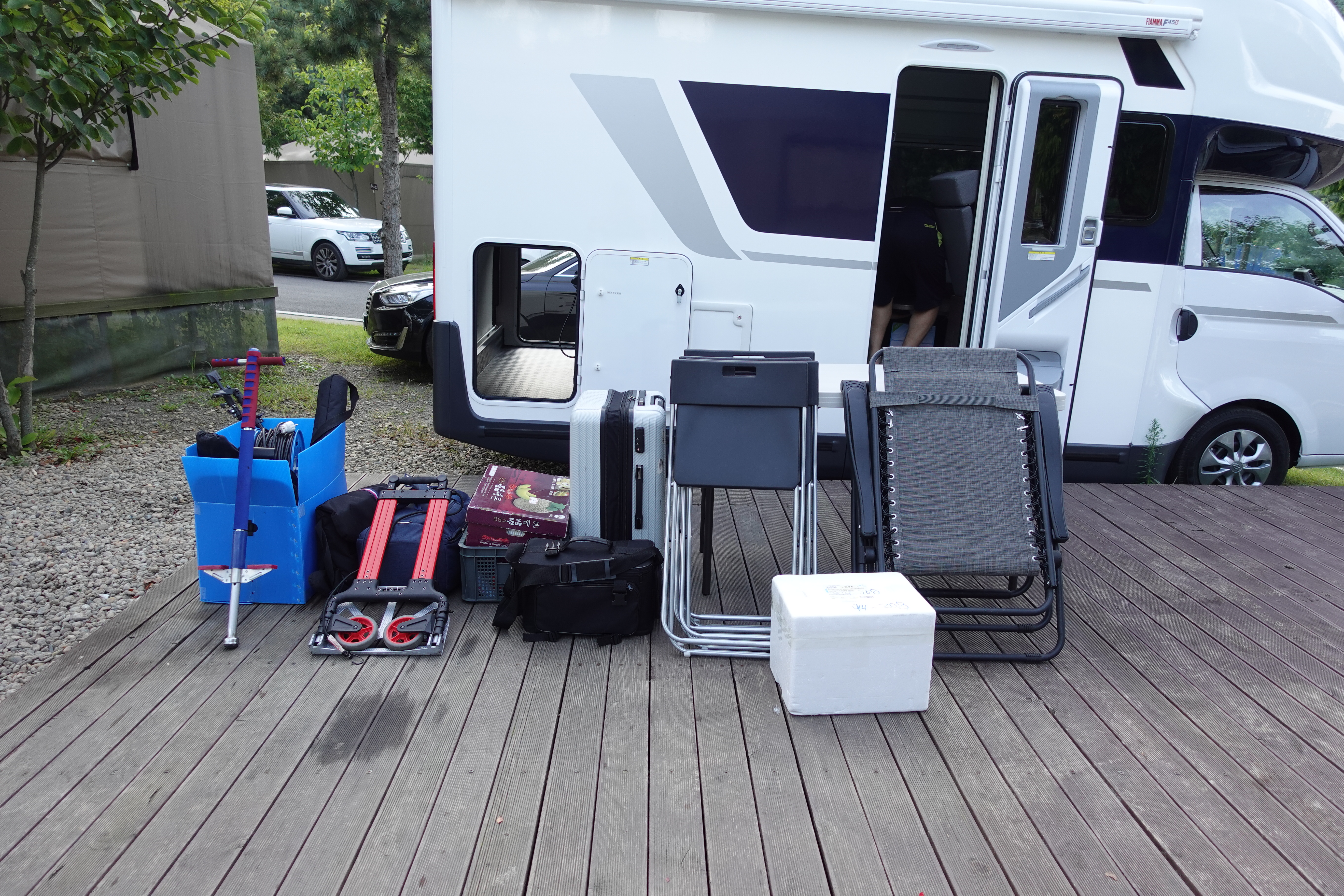 우선 포레스트 내부에는 굉장히 많은 수납공간이 있습니다. 이런 공간에 정리만 잘한다면 집이 필요 없을 정도로 다양한 짐을 저장할 수 있는 장점이 있습니다. 여기에 외부 러기지 트렁크 공간에는 보시다시피 커다란 테이블과 의자 4개와 릴렉스 의자 및 다양한 짐들을 싣을 수가 있으며 정리에 따라서 굉장히 많은 짐을 보관할 수 있습니다. 개인적인 생각으로 정리만 잘한다고 가정한다면 약 4~5일 이상 캠핑이 가능합니다.