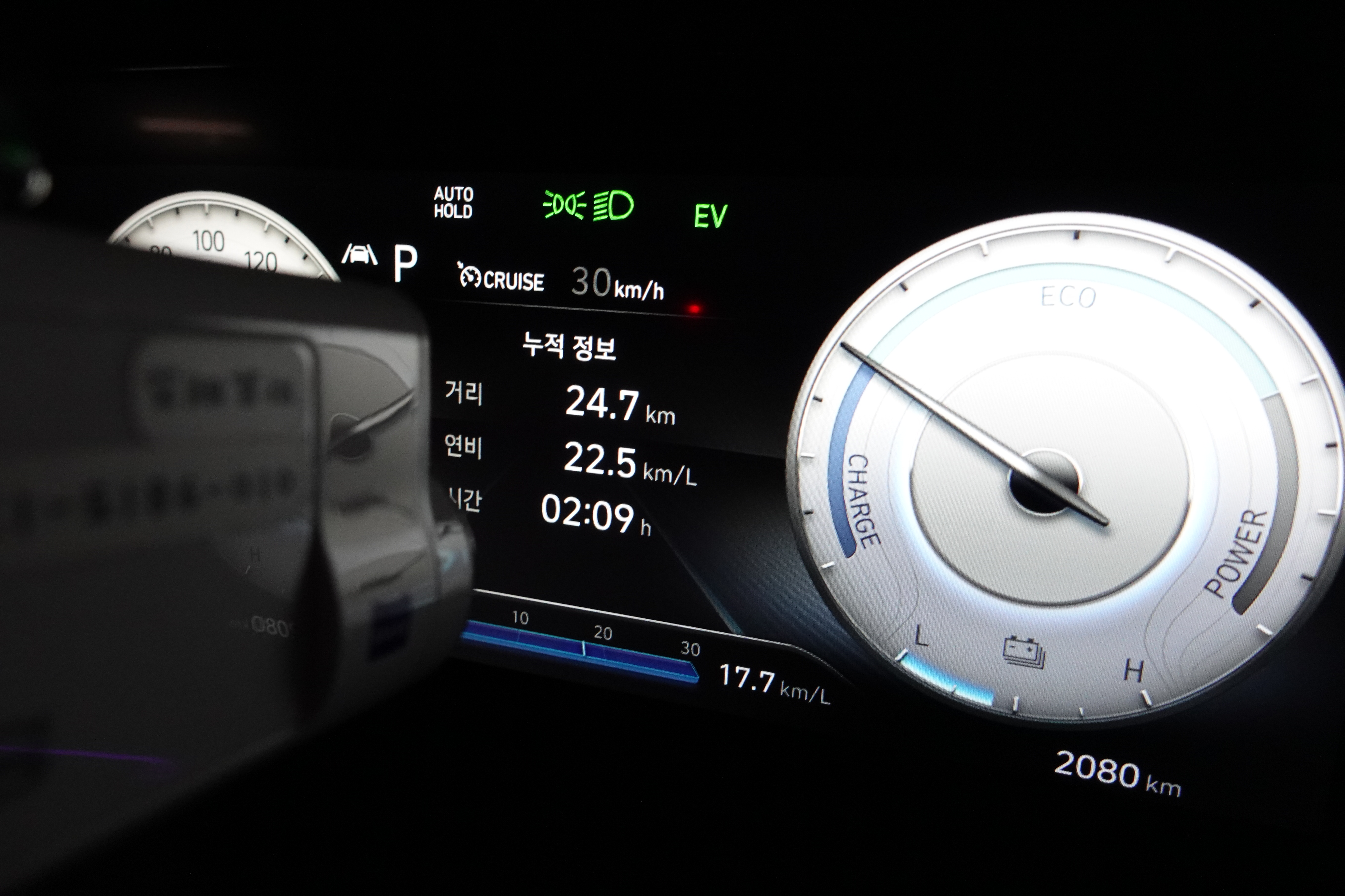 특히나 고속도로에서 보여주는 어댑티브 크루즈 컨트롤 기술인 HDA (Highway Driving Assist) 기술은 아반떼 하이브리드가 최적의 연비를 위하여 능동적으로 시속 5~8km/h를 조정하는 것을 볼 수가 있었다.