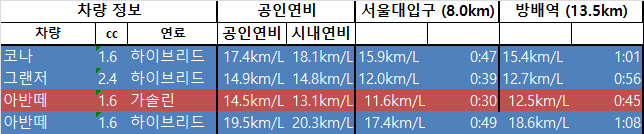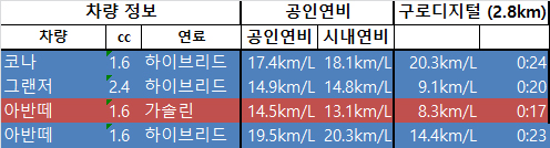 최고 / 최악 연비 테스트 - 아반떼 하이브리드