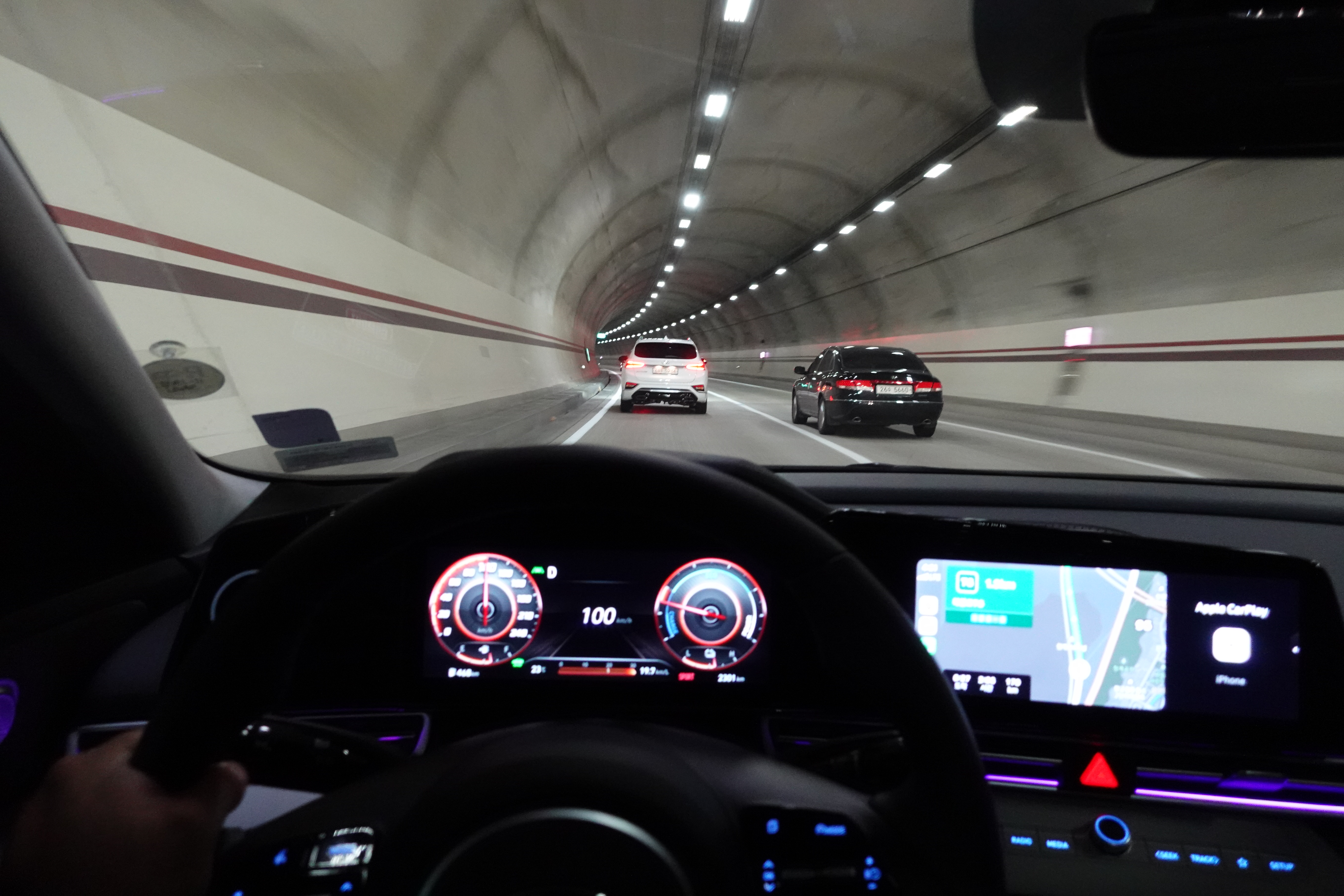 사실 강남 퇴근길 연비 테스트를 하는 이유는 차량에 최악의 연비 테스트를 하기 위함이였는데 하이브리드 모델은 막히는 도로에서 본격 빛을 발휘하는 차량이기에 최악의 연비를 확인하지 못했다. 그렇다면 고속도로에서 스포츠 모드로 달려보면 어떨까?? 아반뗴 하이브리드는 기존 하이브리드 모델과 다른 느낌으로 차가 잘 나가는 느낌을 준다.